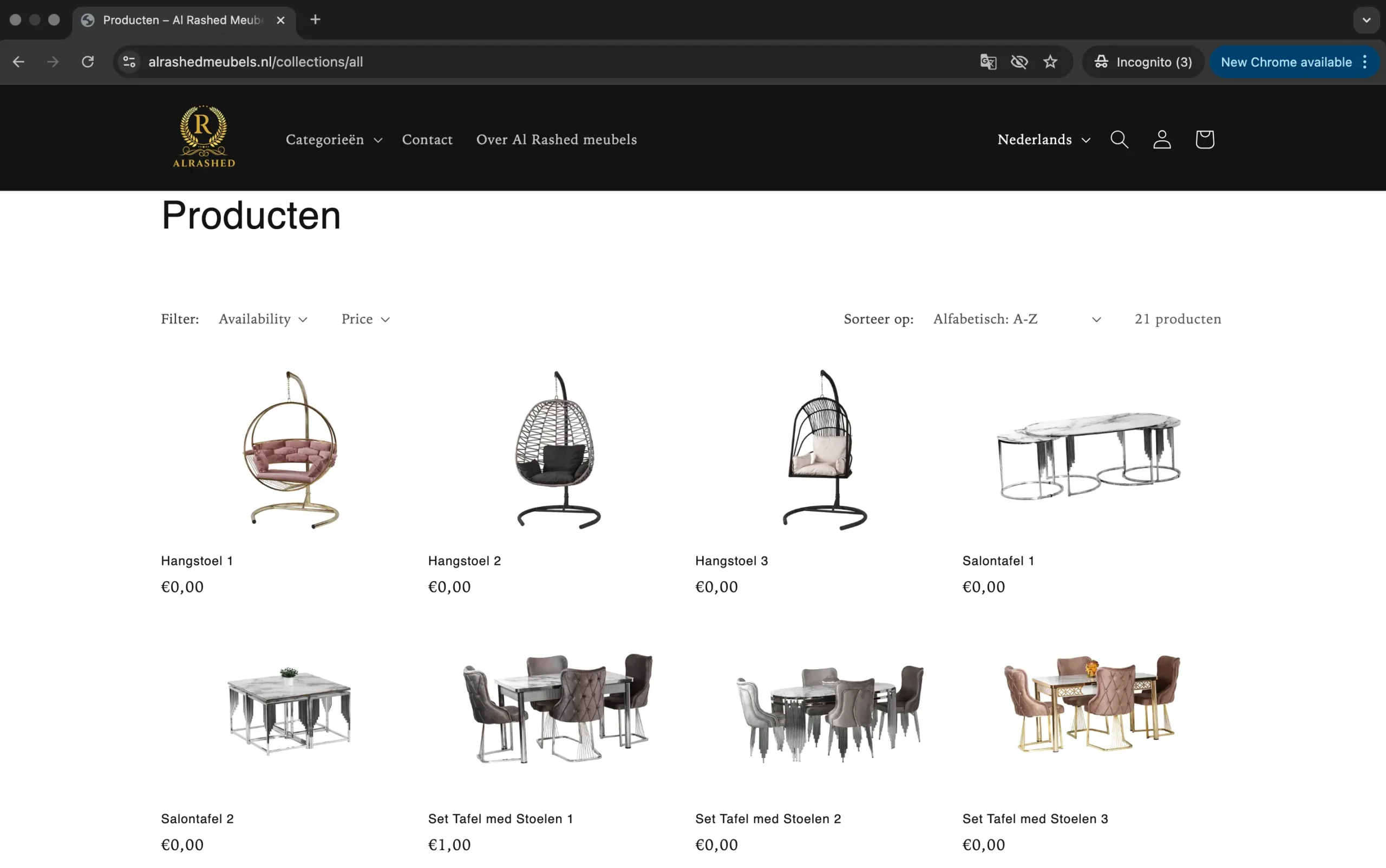 De webshop van Al Rashed Meubels is ontwikkeld met focus op gebruiksgemak en efficiëntie, en bevat alle moderne functies die klanten verwachten van een professionele meubelzaak: